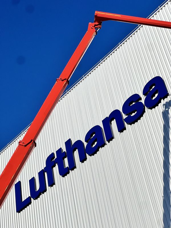 Nach Abschluss der Montage erstrahlt der „Lufthansa“-Schriftzug und das Kranich-Logo wieder in vollem Blau und maximaler Fernwirkung.
