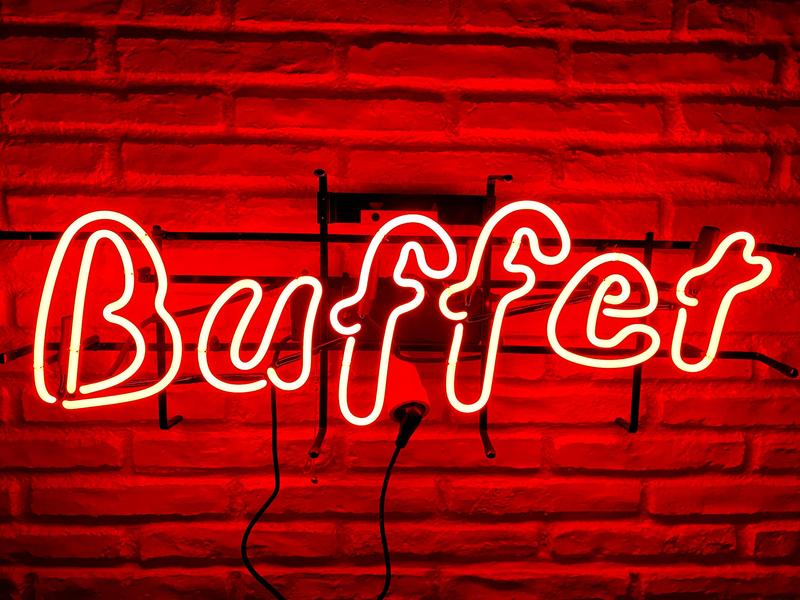 Bild anklicken für Detailansicht" > Buffet - Neon-Schriftzug -Vintage