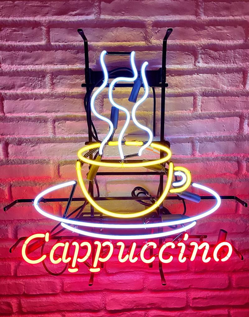 Bild anklicken für Detailansicht" > Cappuccino - Neon-Schriftzug -Vintage