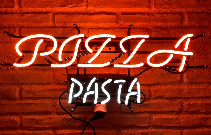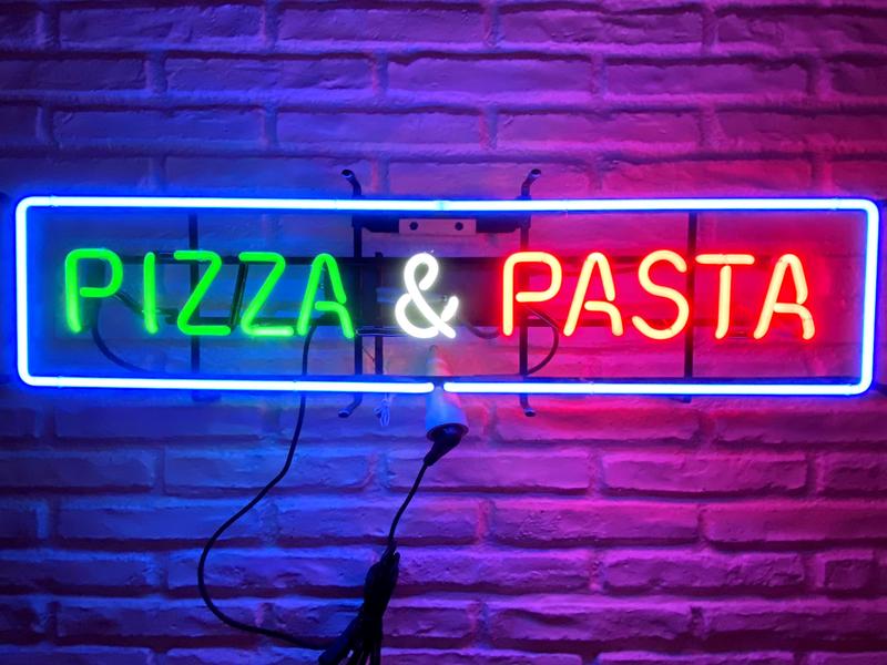 Bild anklicken für Detailansicht" > Pizza & Pasta- Neon-Schriftzug - Vintage