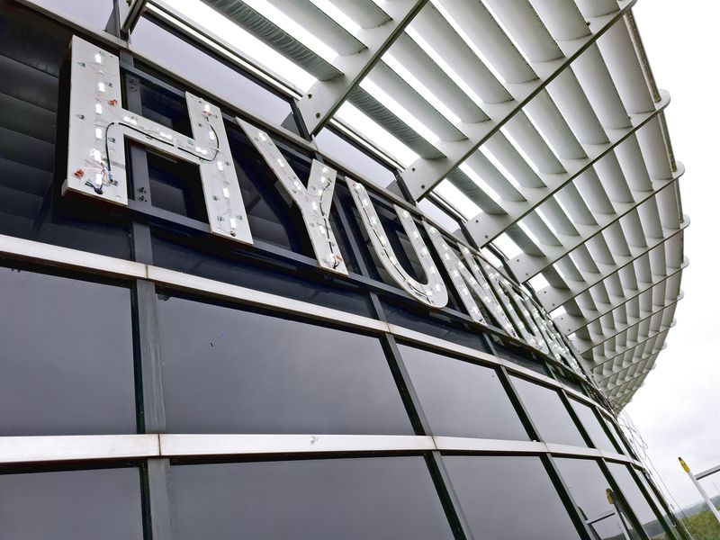 Die systematische Bestückung mit modernen, leuchtstarken LED-Modulen in den Profilbuchstaben von Hyundai Technical-Center. Die leuchtenden Dioden zeigen die erfolgreiche Installation und Verkabelung. Durch dieses LED-Retrofitting wird nicht nur die Leuchtkraft wiederhergestellt, sondern auch die Energieeffizienz der Anlage gesteigert.